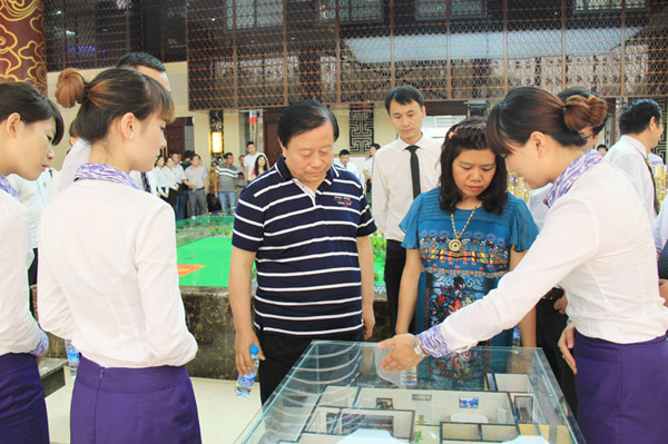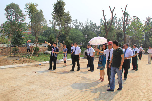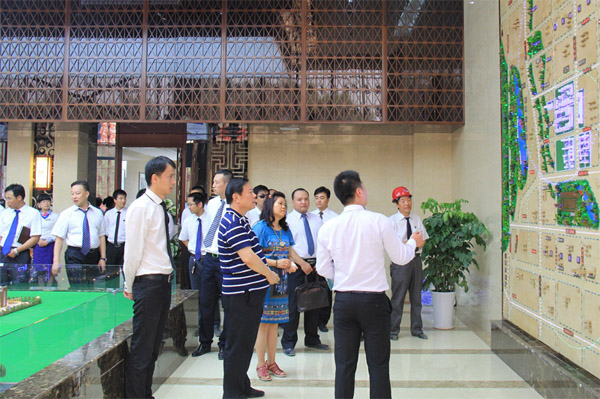 当天售楼部严阵以待,炎炎烈日并没有影响现场的热情。在所有工作人员脸上我们看到了希望,读到了信心,热情周到的服务感染了现场每一个人。首先冯董一行参观验收了景观示范区并多次询问施工过程中所遇到的困难和不足,并及时提出了建议和要求。据悉国宾中央区营销中心景观示范区绿化面积达到8000㎡,这在西安同规模楼盘中已经是佼佼者。“细节决定成败”,景观示范区无论从广场铺砖、道沿铺装、踏步石、喷泉、文化石等各方面都不惜成本力求做到完美极致。“以石、水为景观设计主题,配合大片绿植、草地种植,最终达到自然生态与传统文化的完美统一,精心为客户打造一所与众不同的、文化传统气息浓厚的高档会所式营销中心。”在验收完所有工作后的高层领导座谈会上冯董如是说。