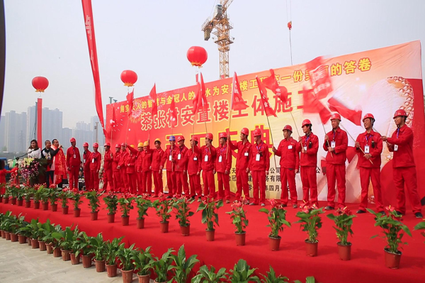 活动现场,宝天集团嘉宾领导就本次与金冠建筑劳务公司合作特别发言,表示相信两家实力企业的强强联合,将会为业主呈现更有品质的社区。随后,宝天集团领导嘉宾对金冠建筑劳务公司开工表示亲切关怀、大力支持与热情鼓励,并赠开工牌匾以表信任,希望双方携手共创行业第一。金冠建筑劳务公司集体宣誓:保质保量圆满实现工程施工。口号热情嘹亮直贯云霄,将现场的气氛直推向高潮。