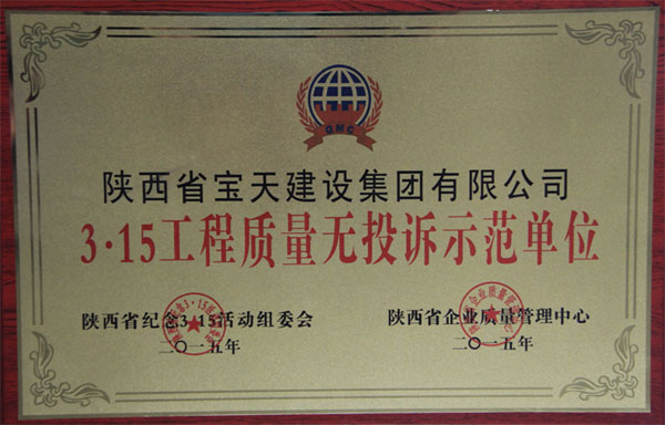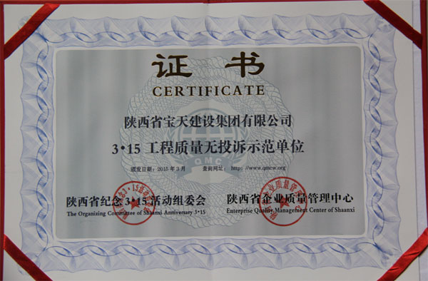 在此之际陕西省宝天建设集团积极响应政府号召,严把工程质量关,全公司上下尤其是一线的项目部,紧紧围绕这个主题,齐抓共管,取得了不错的成绩,在前不久我集团公司荣获“陕西省工程质量无投诉示范单位”荣誉称号。