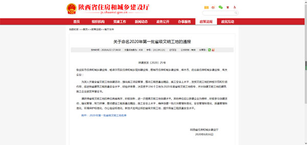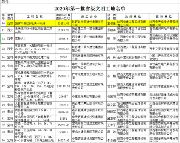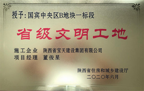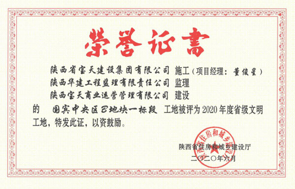 喜报!喜报!喜报!陕西省宝天建设集团有限公司承建的国宾中央区B地块一标段荣获“2020年度省级文明工地”,受到陕西省住房和城乡建设厅表彰。