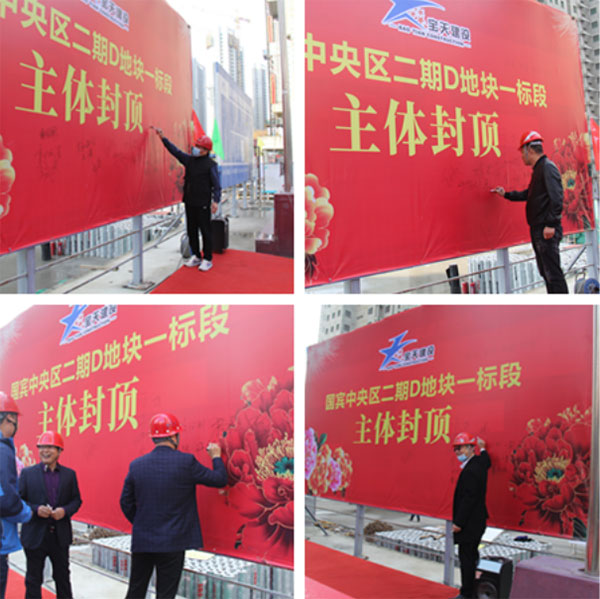 庆典上,宝天集团领导、万科代表、监理单位以及各兄弟单位代表齐聚一堂见证这喜庆的时刻,大家纷纷在签名墙上签名并送上美好祝愿。