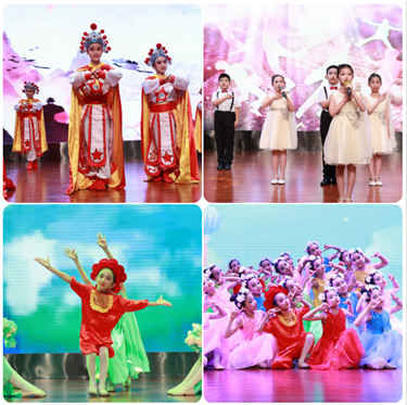 舞台上孩子们用自己美丽的心灵,载歌载舞在艺术素养的道路上弘扬传统文化。