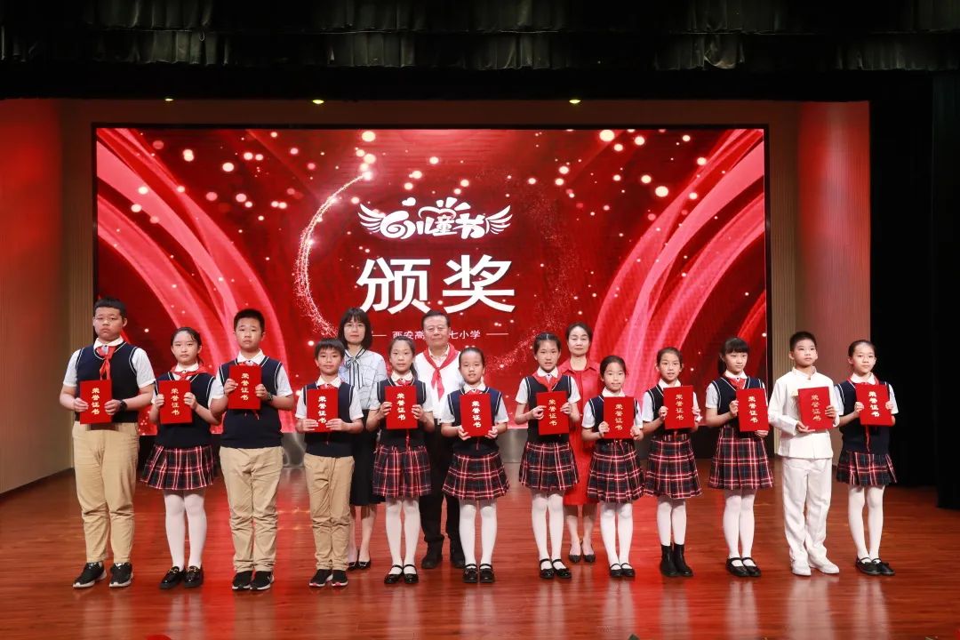 获奖的七小学子洋溢着自信且自豪的笑容。